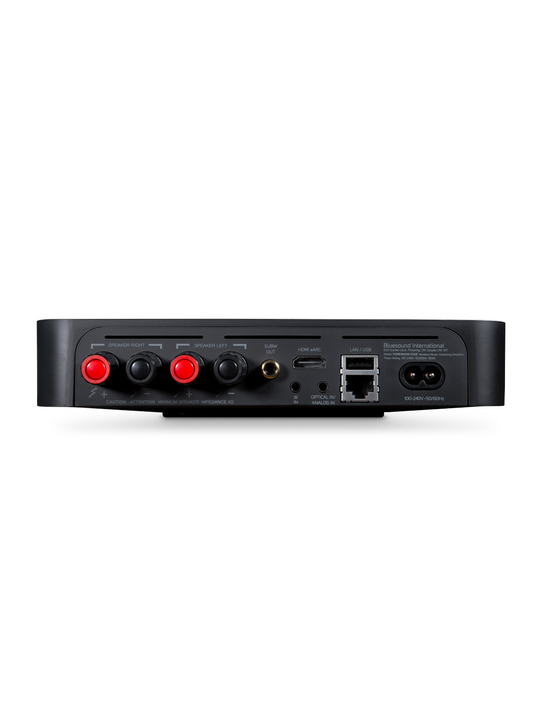 Description: The Bluesound Powernode Edge is a compact "just-add-speakers" streaming amplifier that bridges the gap between streaming and high-fidelity sound. It packs a punchy 40 watts per channel, allowing you to drive a wide range of passive speakers. Its slim, 1U design and included mounting bracket make it incredibly versatile for discreet installations behind TVs or on walls. It is the perfect entry point into hi-res multi-room audio for those seeking a powerful yet minimalist setup.