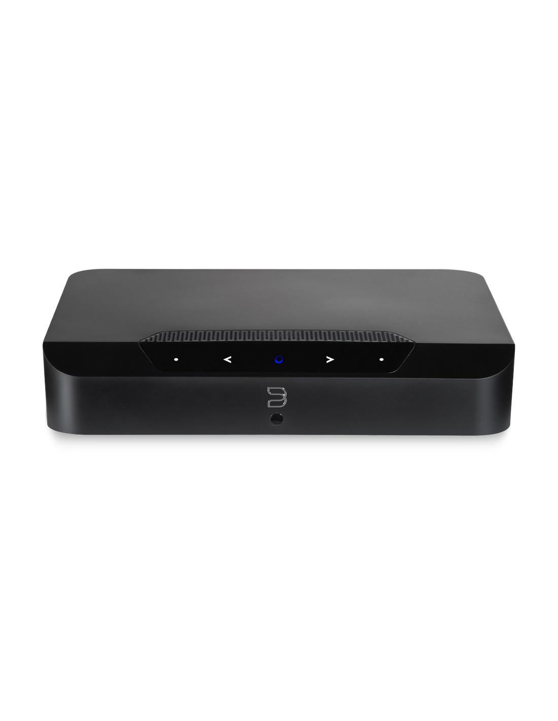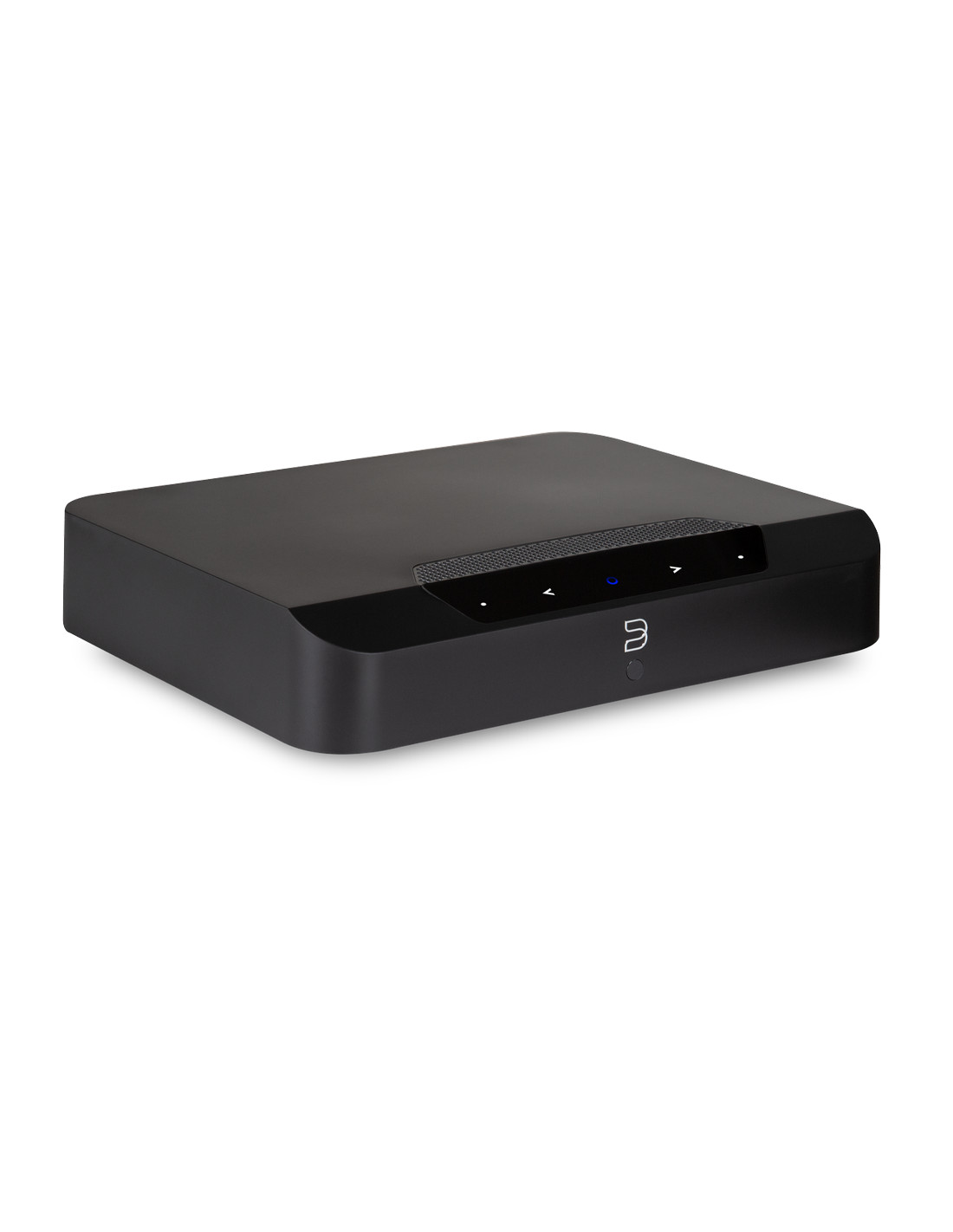 Control: Front-panel touch controls, BluOS app, IR remote learning